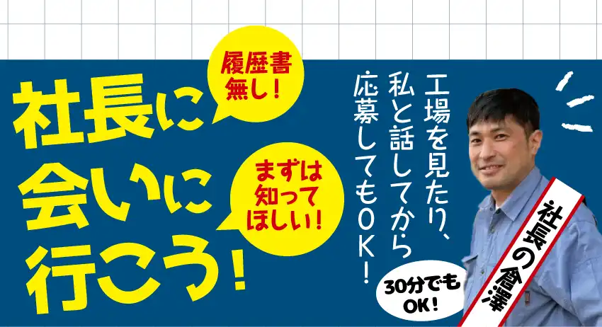 ★見学しながら社長と話をして、会社のこと、仕事のこと、雰囲気や環境を確認してから応募を決めても大丈夫です。